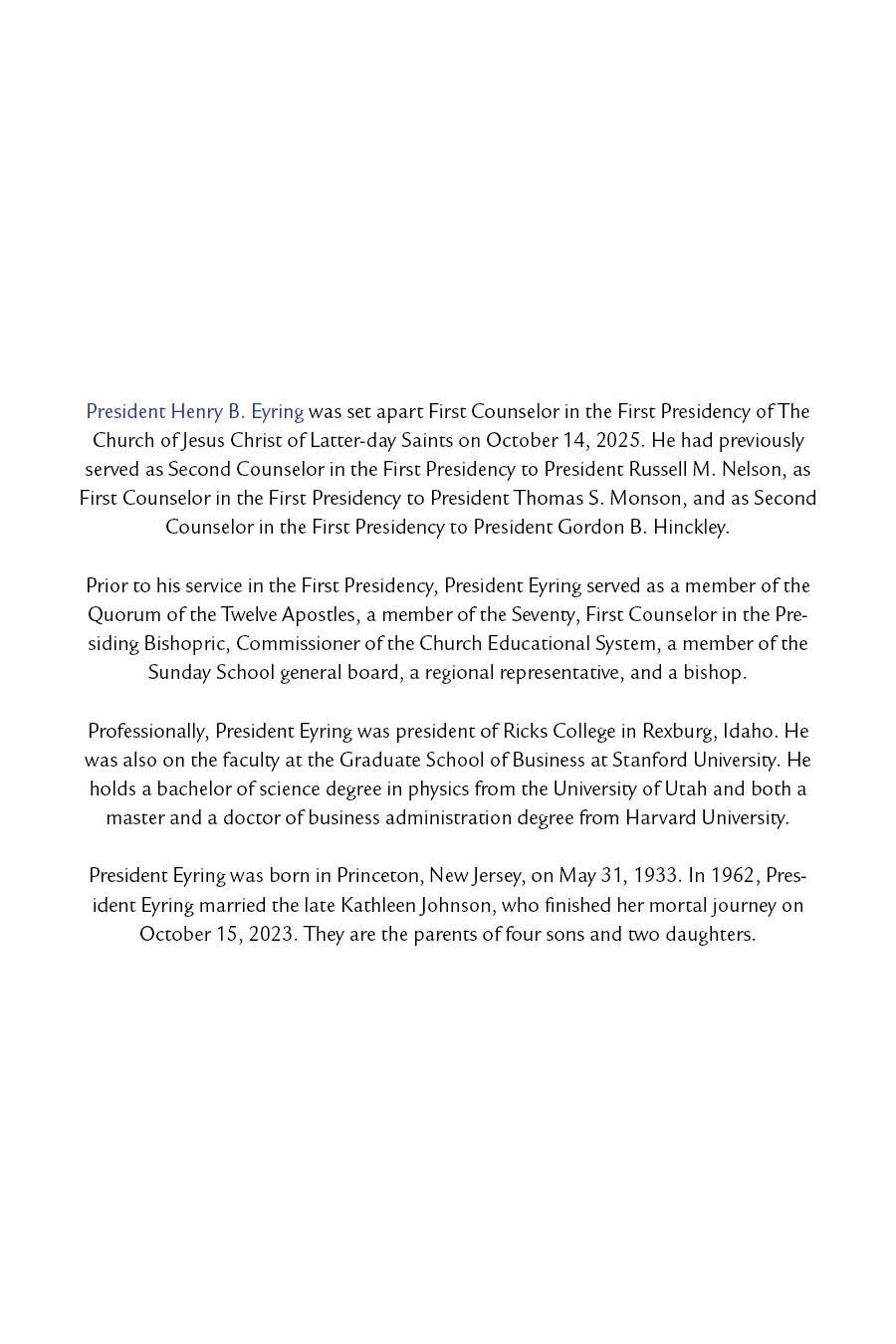 Gift Booklet — Eyring
