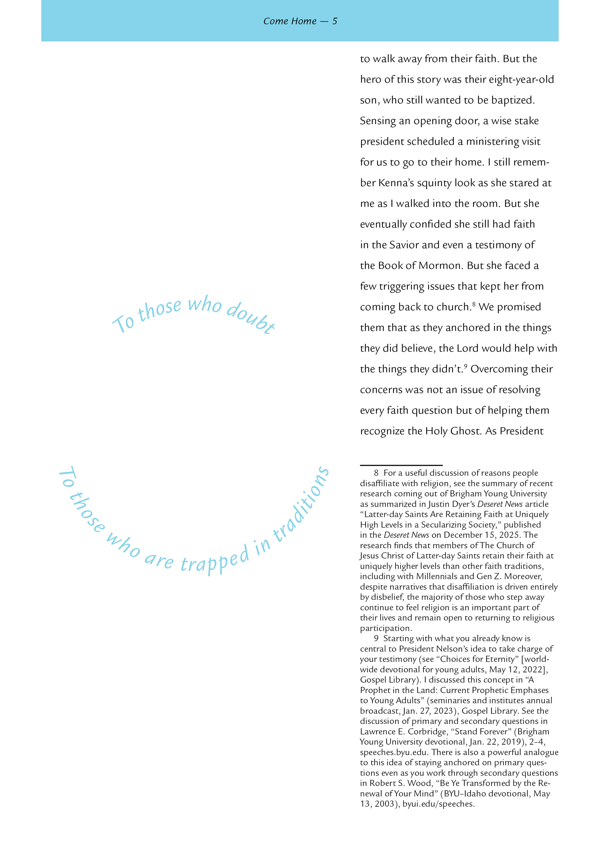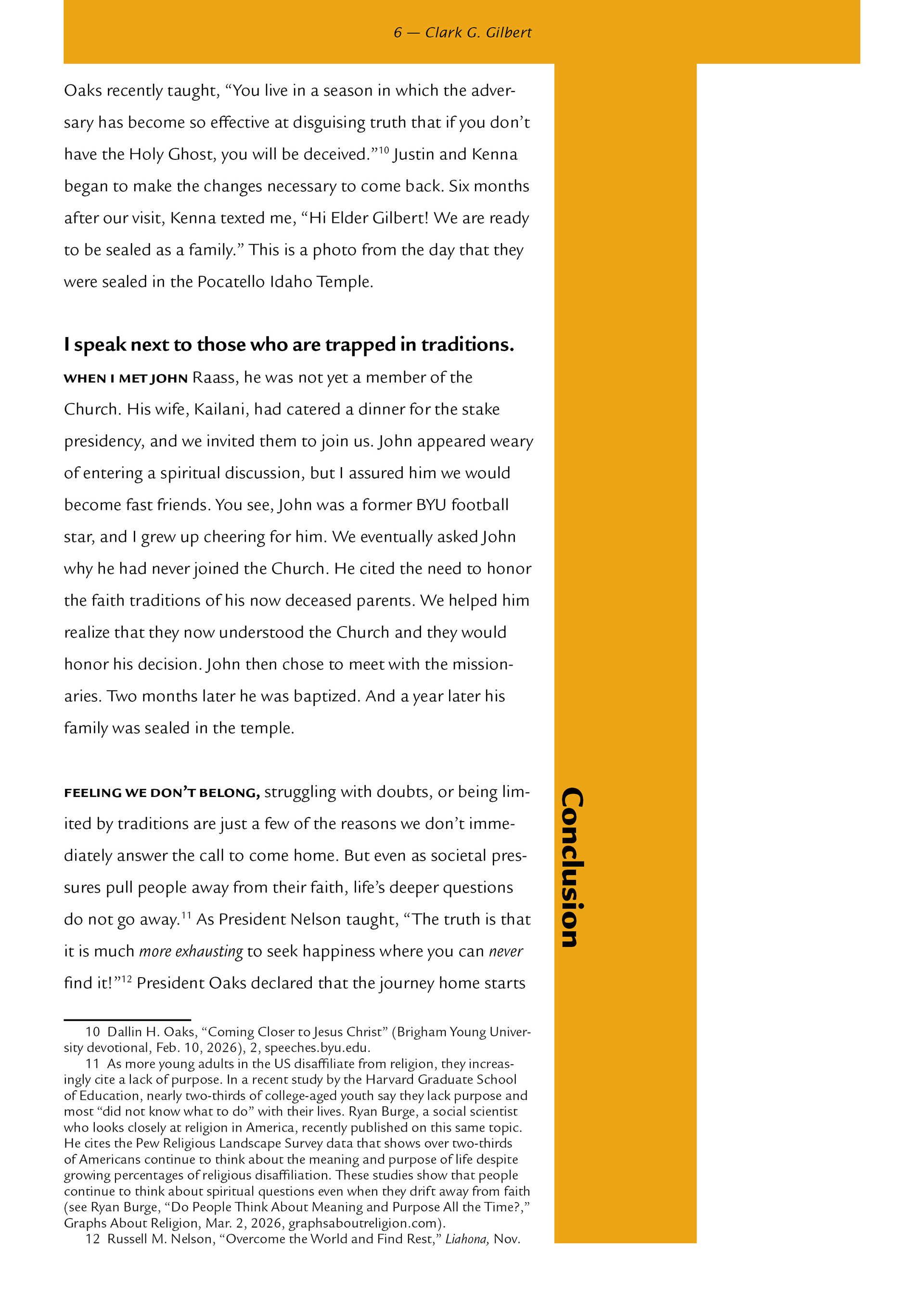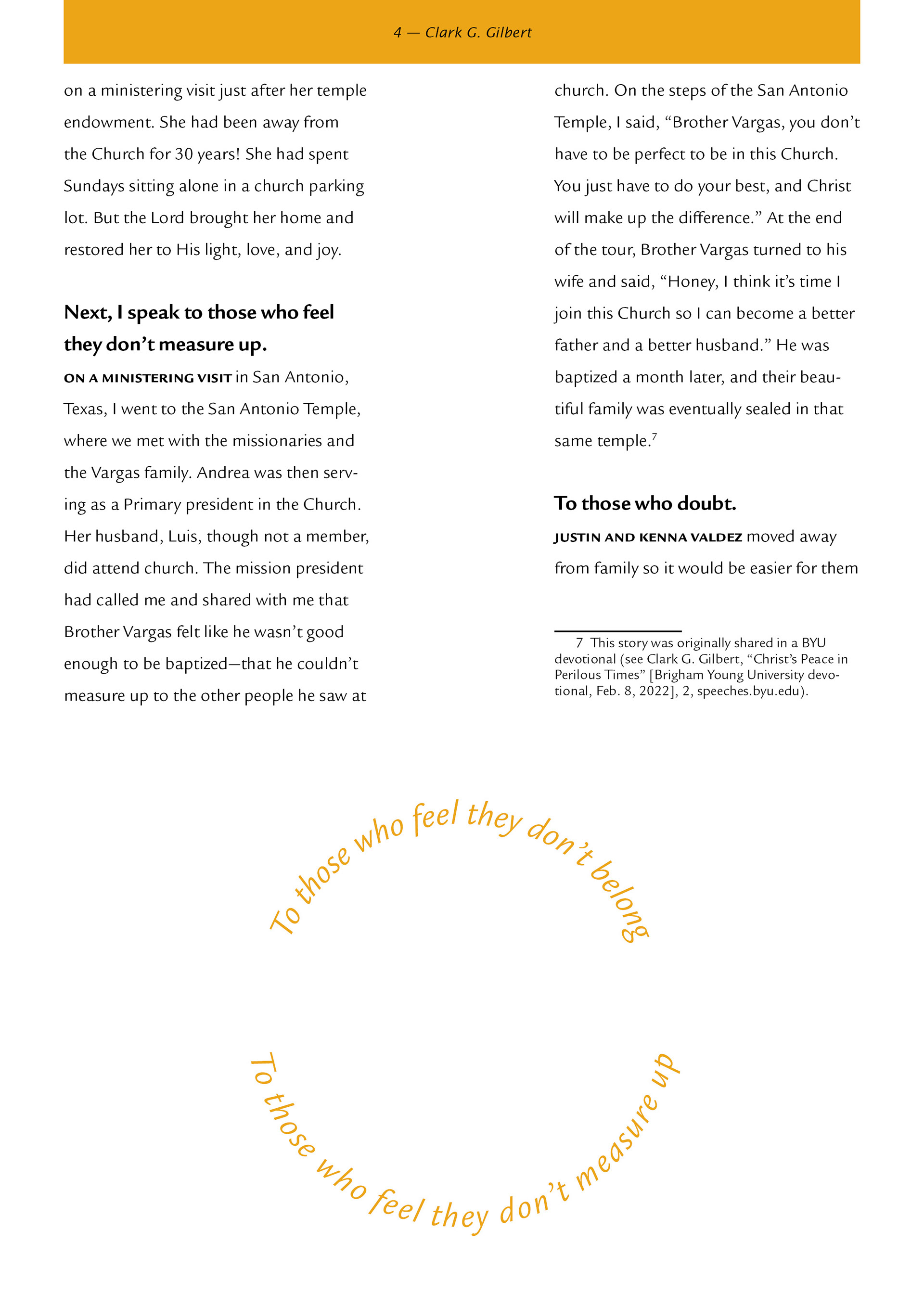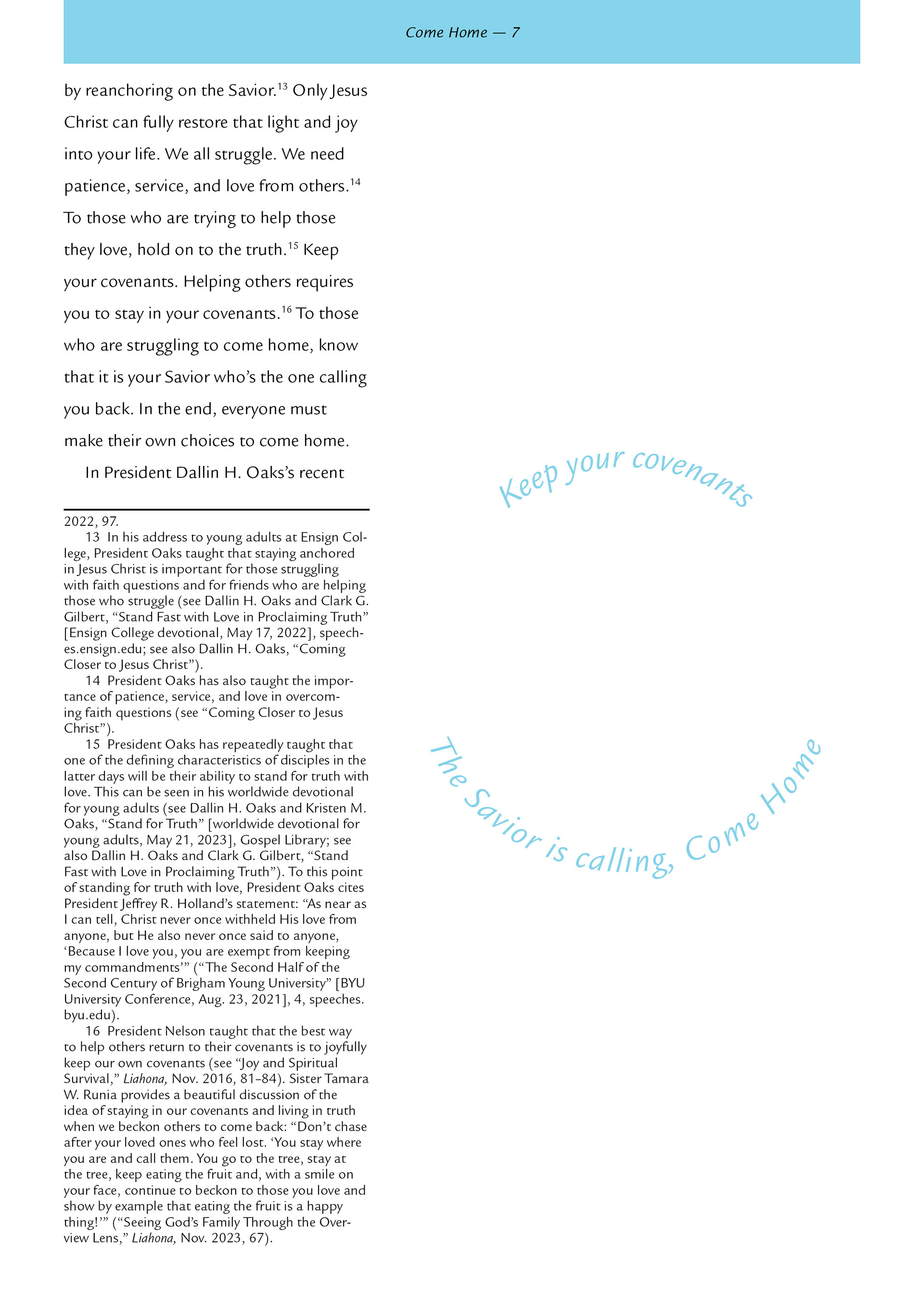 This is a gift booklet of Elder Clark G. Gilbert's first address as a member of the Quorum of 12 Apostles. It focuses on Christ welcoming everyone back to him—to come home.
